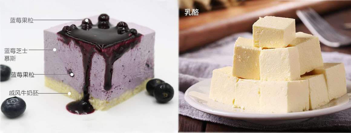 • 主要原材料: 蓝莓果茸(法国宝茸)、奶油芝士(澳大利亚)、纯牛奶(新西兰)、蓝莓果馅(比利时)、幼砂糖(韩国)、总统淡奶油(法国)