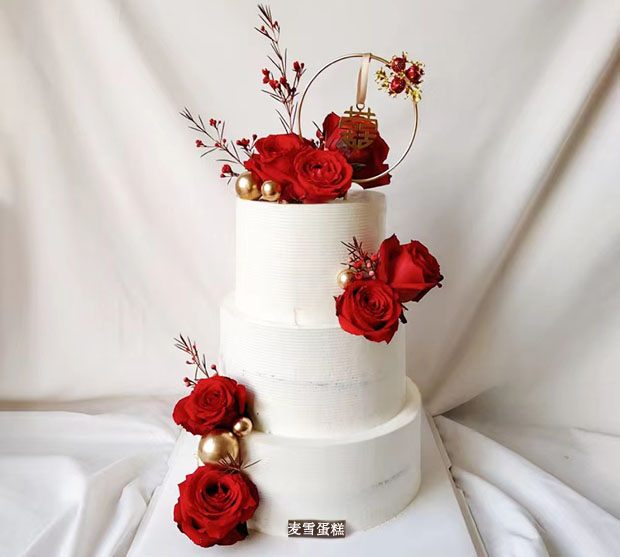 红色玫瑰婚礼蛋糕
