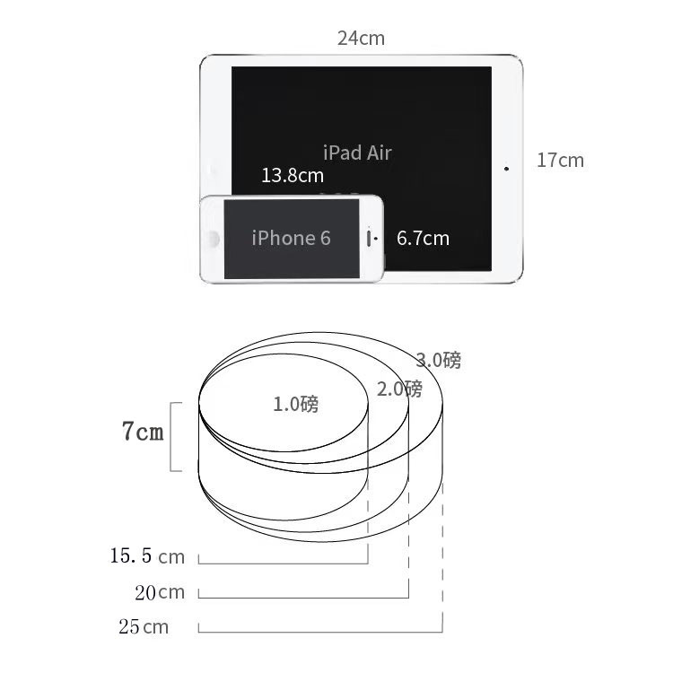 关于英寸,方形蛋糕以对角线折算,圆形蛋糕以直径折算;1英寸≈2.54cm。